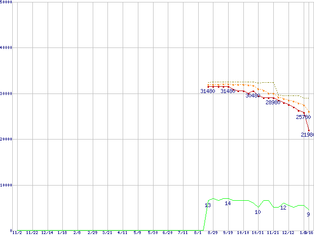 | Core 2 Quad Q9400 (2.66GHz,L2 3MB×2)の価格推移 | | | (2007年11月2日~2009年1月16日) |