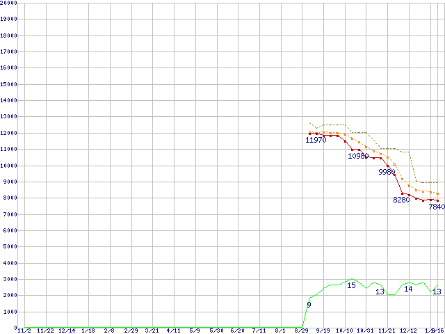 | Athlon X2 6000+ (3.1GHz,L2 512KB×2)の価格推移 | | | (2007年11月2日~2009年1月16日) |