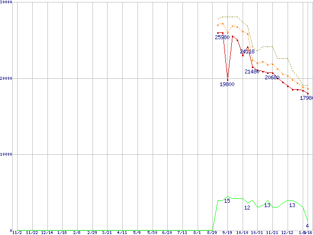 | Core 2 Quad Q8200 (2.33GHz,L2 2MB×2)の価格推移 | | | (2007年11月2日~2009年1月16日) |