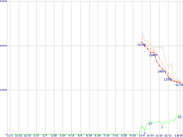 | ST31500341AS (1.5TB,32MB)の価格推移 | | | (2007年11月1日~2009年1月15日) |