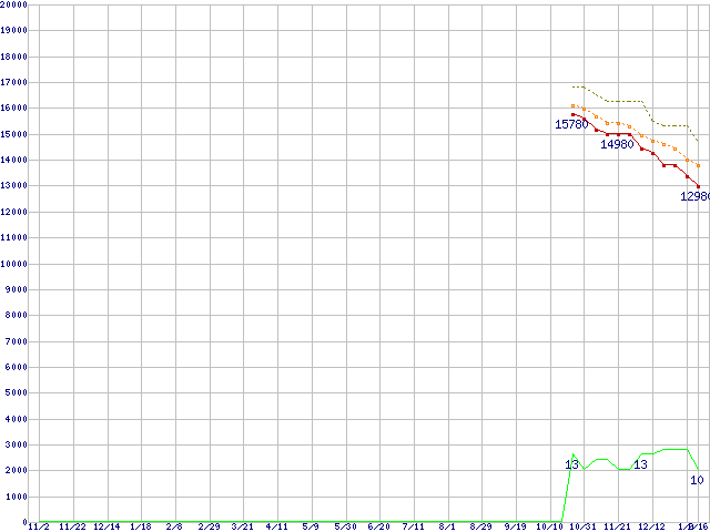 | Core 2 Duo E7400 (2.80GHz,L2 3MB)の価格推移 | | | (2007年11月2日~2009年1月16日) |