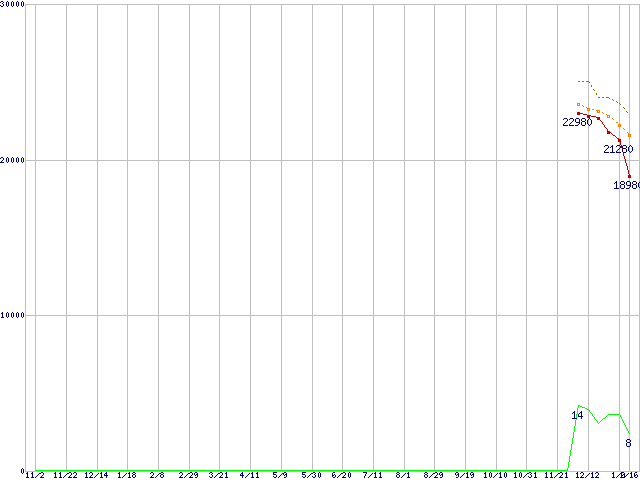 | Core 2 Quad Q8300 (2.5GHz,L2 2MB×2)の価格推移 | | | (2007年11月2日~2009年1月16日) |