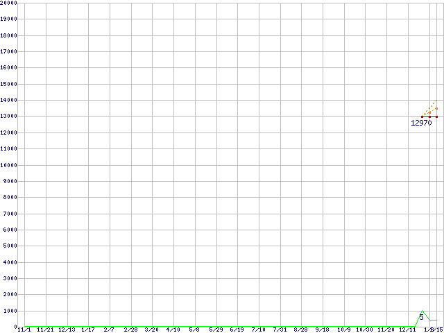 ※このグラフは過去のデータも税率5%相当に調整した税込み相当額のグラフです。 税率変更や、総額表示方式導入(2004年4月)の影響は除いています。 | | | ●凡例 | 最安値 (点線部は販売店未確認 または未調査) | 平均値 | 最高値 | ショップ数 |