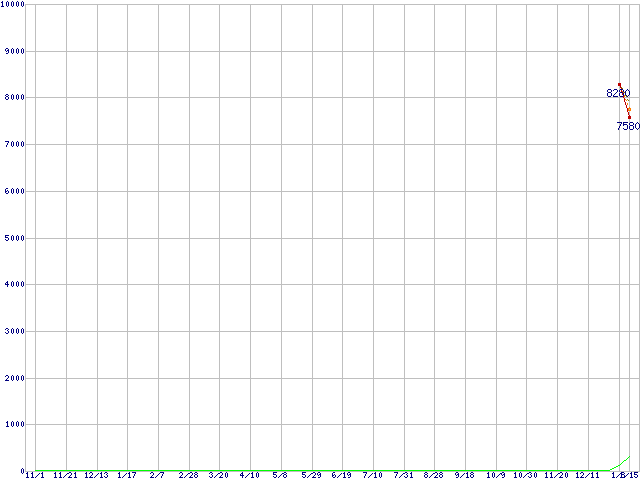 | HDT721075SLA360 (750GB,16MB)の価格推移 | | | (2007年11月1日~2009年1月15日) |
