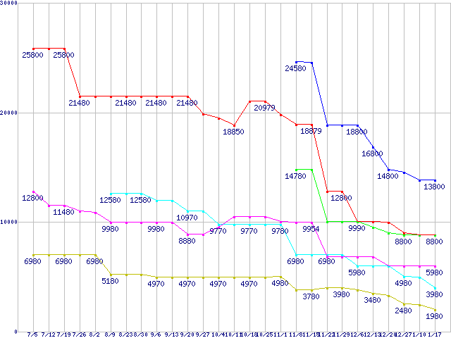 PC3-12800(DDR3-1600) DDR3 SDRAM DIMMの最安値推移