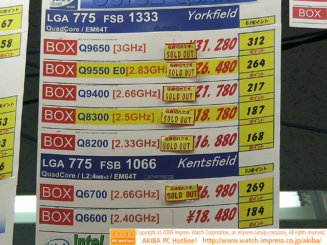 Core 2 Quad最上位が3万円台前半に値下がり、価格改定