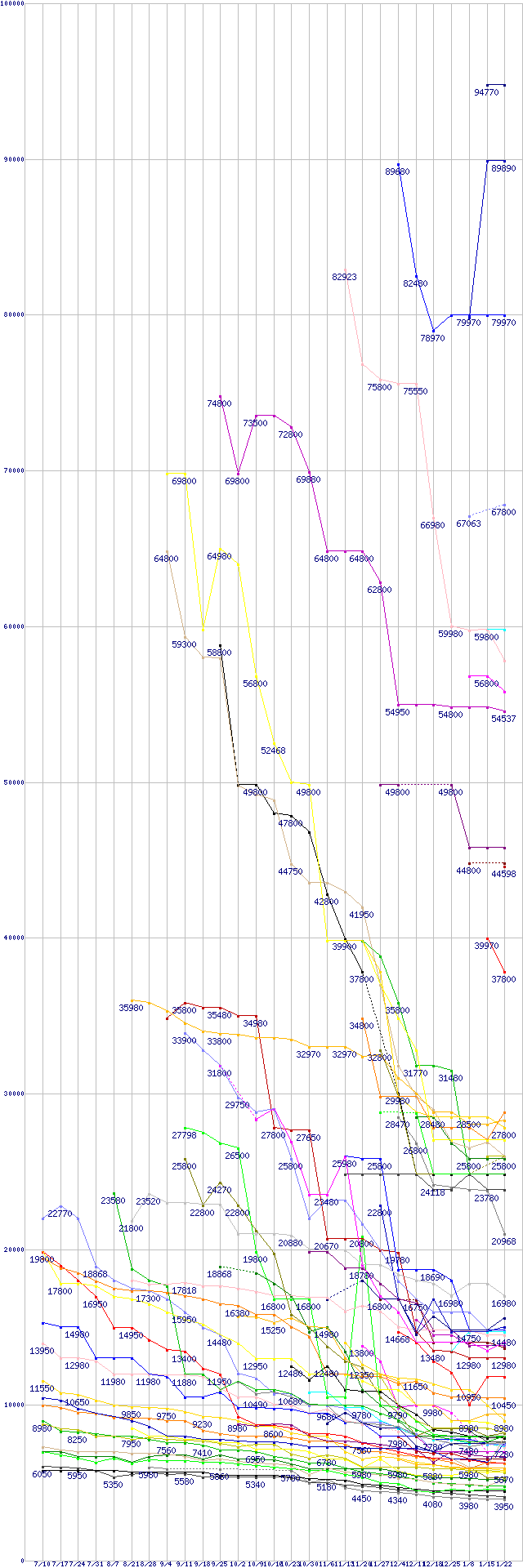 | HDD/SSD主要製品の最安値推移 | | | (2008年7月10日~2009年1月22日) |