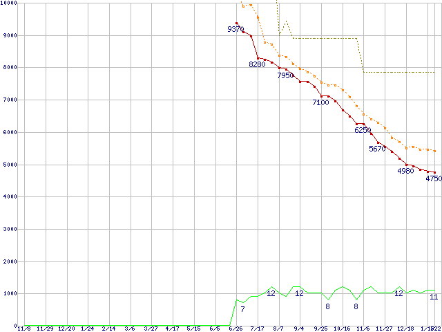 | HTS543225L9A300 (250GB,8MB)の価格推移 | | | (2007年11月8日~2009年1月22日) |