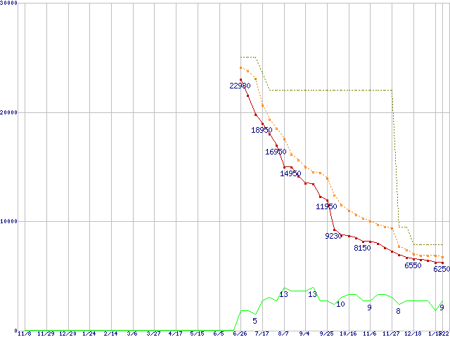 | HTS723225L9A360 (250GB,16MB)の価格推移 | | | (2007年11月8日~2009年1月22日) |