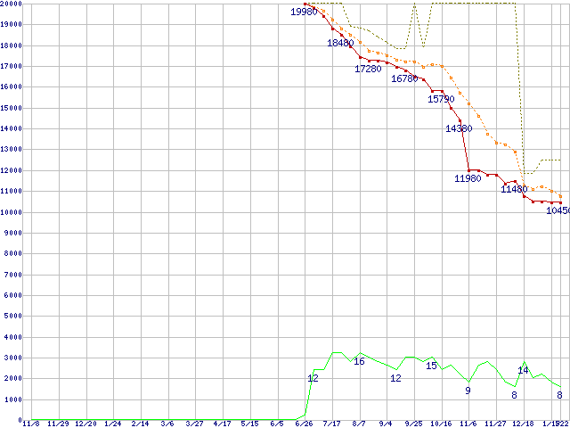 | WD1001FALS (1TB,32MB)の価格推移 | | | (2007年11月8日~2009年1月22日) |