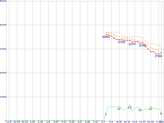 | WD3000HLFS (300.0GB)の価格推移 | | | (2007年11月8日~2009年1月22日) |