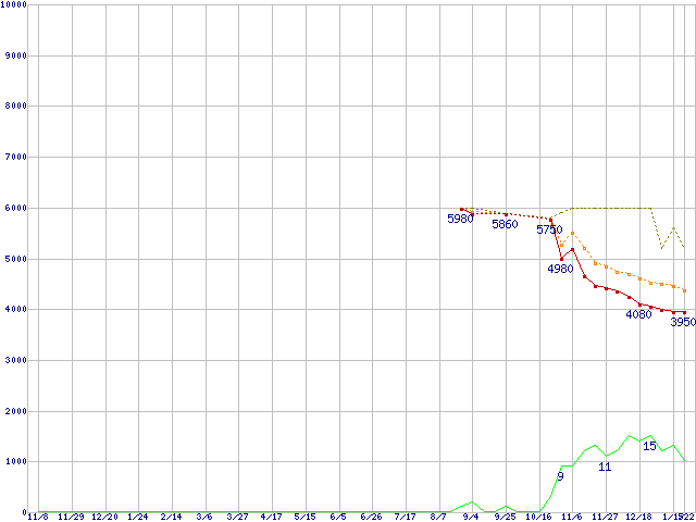 | HDT721032SLA360 (320GB,16MB)の価格推移 | | | (2007年11月8日~2009年1月22日) |