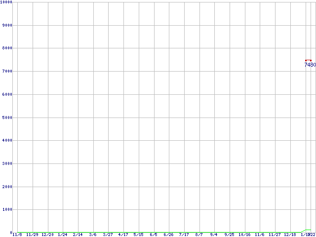※このグラフは過去のデータも税率5%相当に調整した税込み相当額のグラフです。 税率変更や、総額表示方式導入(2004年4月)の影響は除いています。 | | | ●凡例 | 最安値 (点線部は販売店未確認 または未調査) | 平均値 | 最高値 | ショップ数 |