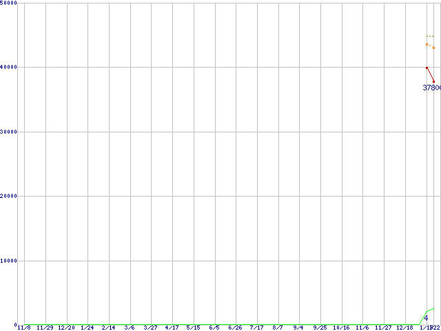 ※このグラフは過去のデータも税率5%相当に調整した税込み相当額のグラフです。 税率変更や、総額表示方式導入(2004年4月)の影響は除いています。 | | | ●凡例 | 最安値 (点線部は販売店未確認 または未調査) | 平均値 | 最高値 | ショップ数 |