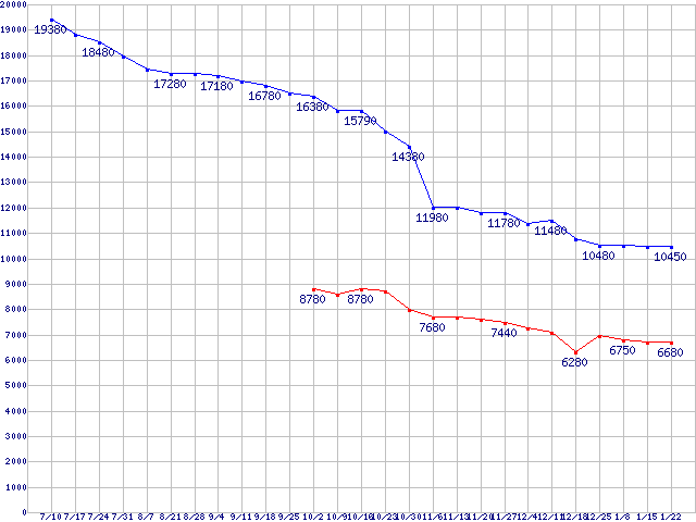 WD VelociRaptor (10000rpm,3Gb/s,16MB)の最安値推移