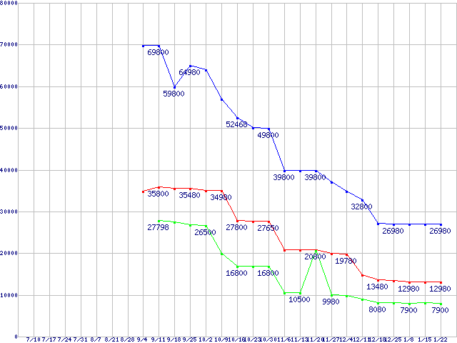 | OCZ Core Series V2 SATA II 2.5" SSD (SSD,3Gb/s,2.5インチ)の最安値推移 | | | (2008年7月10日~2009年1月22日) |