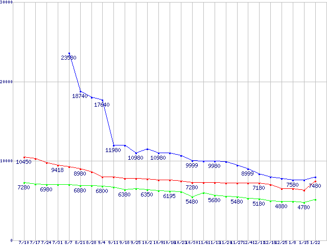 Barracuda 7200.12 (7200rpm,3Gb/s)の最安値推移
