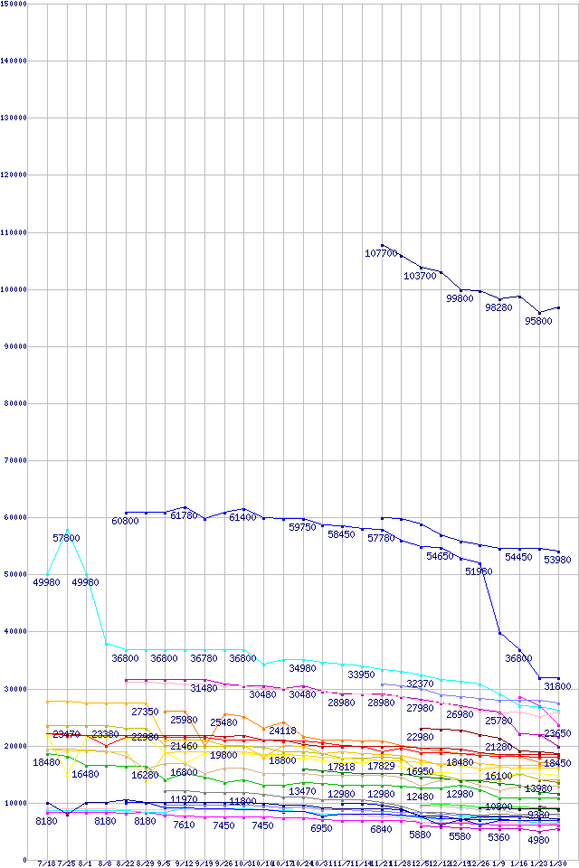 ※製品名をクリックすると個別のグラフを表示します ※点線部は販売店が確認できなかった、または調査データがないことを示します |