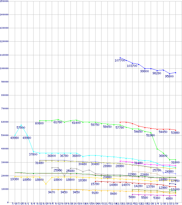 ※製品名をクリックすると個別のグラフを表示します ※点線部は販売店が確認できなかった、または調査データがないことを示します |