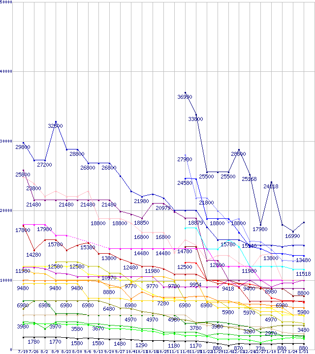PC3-10600(DDR3-1333) DDR3 SDRAM DIMMの最安値推移