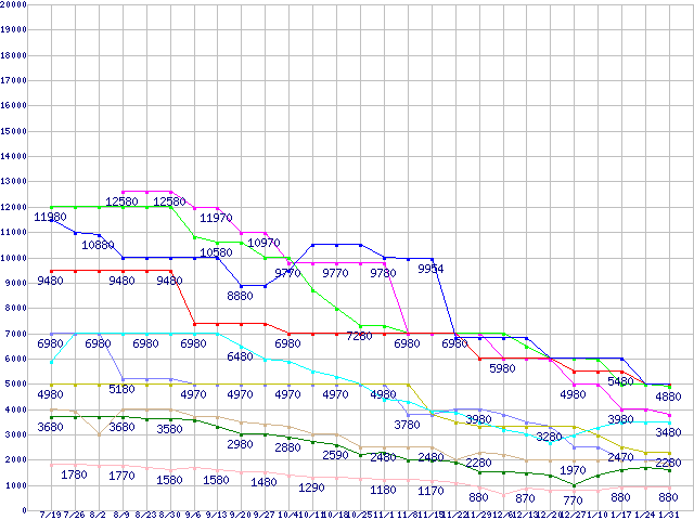 メモリ主要製品(最安値5千円~1万円未満)の最安値推移