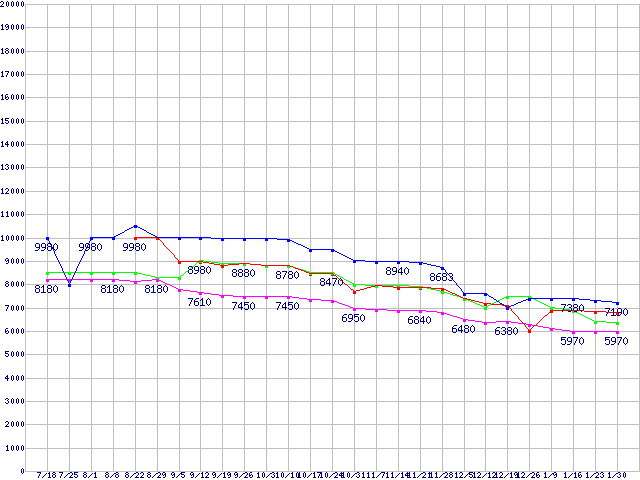 | Socket AM2 (HyperTransport,Dual Core,TDP 65W)の最安値推移 | | | (2008年7月18日~2009年1月30日) |