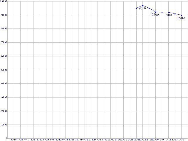 | Socket AM2 (HyperTransport 3.0,Triple Core,TDP 65W)の最安値推移 | | | (2008年7月18日~2009年1月30日) |