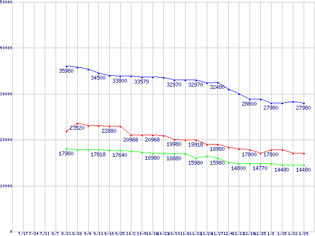 WD VelociRaptor (10000rpm,3Gb/s,16MB)の最安値推移