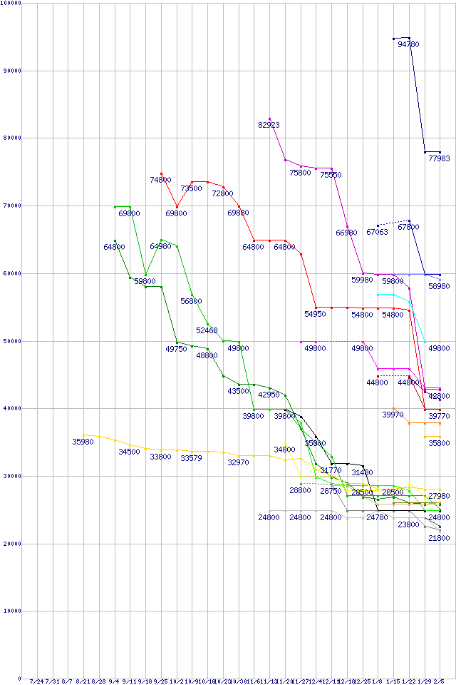 ※製品名をクリックすると個別のグラフを表示します ※点線部は販売店が確認できなかった、または調査データがないことを示します |
