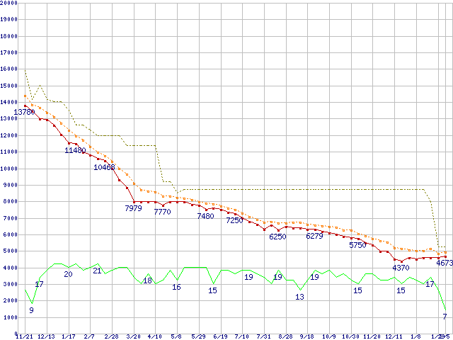 | HDP725050GLA360 (500GB,16MB)の価格推移 | | | (2007年11月21日~2009年2月5日) |