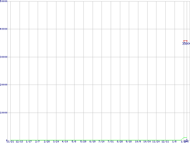 ※このグラフは過去のデータも税率5%相当に調整した税込み相当額のグラフです。 税率変更や、総額表示方式導入(2004年4月)の影響は除いています。 | | | ●凡例 | 最安値 (点線部は販売店未確認 または未調査) | 平均値 | 最高値 | ショップ数 |