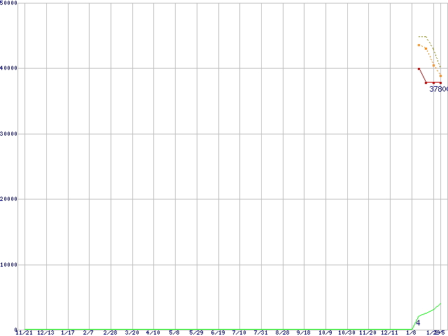 ※このグラフは過去のデータも税率5%相当に調整した税込み相当額のグラフです。 税率変更や、総額表示方式導入(2004年4月)の影響は除いています。 | | | ●凡例 | 最安値 (点線部は販売店未確認 または未調査) | 平均値 | 最高値 | ショップ数 |