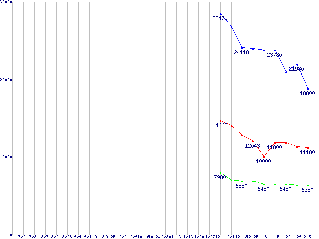 SATA II 2.5" SSD (SSD,2.5インチ)の最安値推移