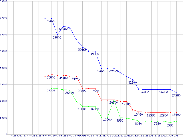 | OCZ Core Series V2 SATA II 2.5" SSD (SSD,3Gb/s,2.5インチ)の最安値推移 | | | (2008年7月24日~2009年2月5日) |