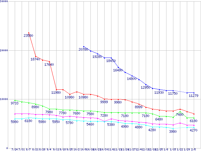 Barracuda 7200.12 (7200rpm,3Gb/s)の最安値推移