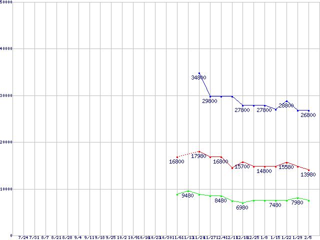 WD Scorpio Blue (5400rpm,3Gb/s,2.5インチ)の最安値推移