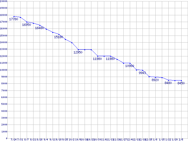 Spinpoint M6 (5400rpm,1.5Gb/s,2.5インチ)の最安値推移