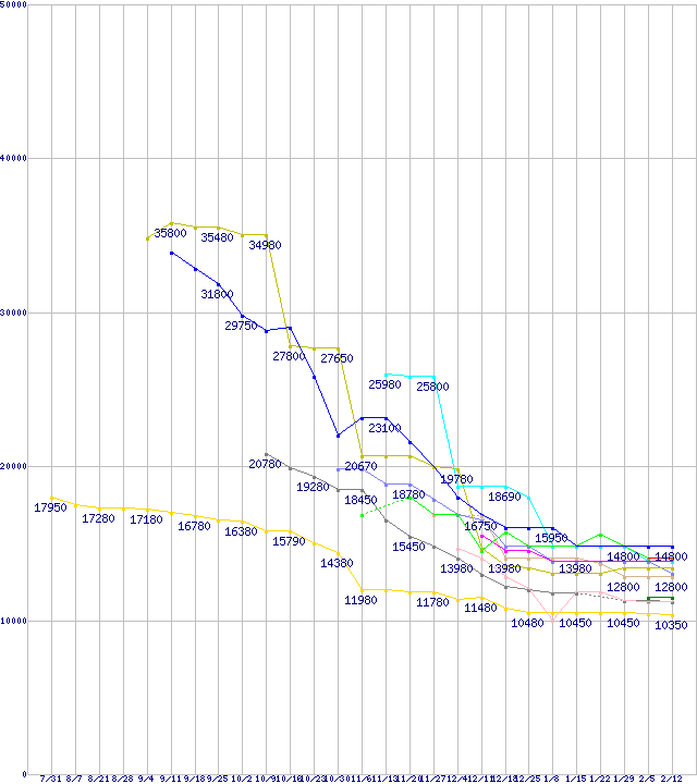 ※製品名をクリックすると個別のグラフを表示します ※点線部は販売店が確認できなかった、または調査データがないことを示します |