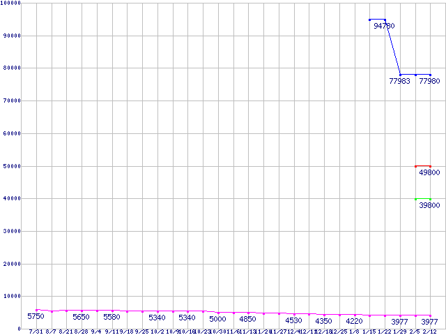 HDD 160~200GB未満の最安値推移