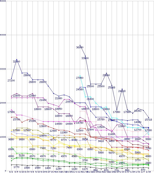 メモリ主要製品の最安値推移