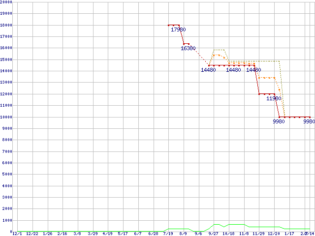 PC3-12800(DDR3-1600) DDR3 SDRAM DIMMの最安値推移