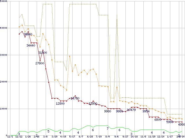 メモリ主要製品(最安値5千円未満)の最安値推移