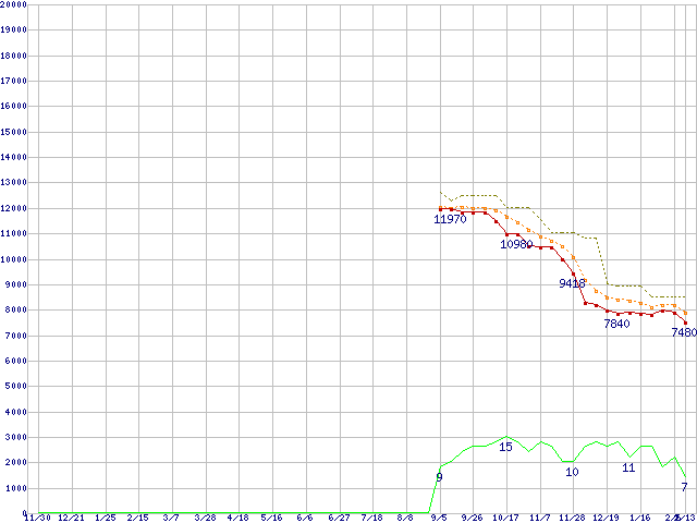 | Athlon X2 6000+ (3.1GHz,L2 512KB×2)の価格推移 | | | (2007年11月30日~2009年2月13日) |