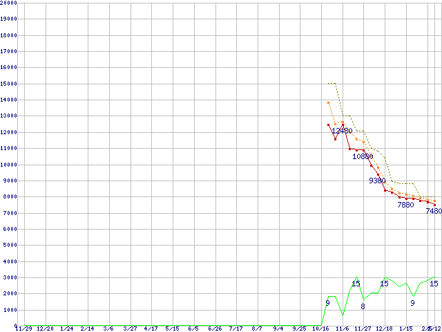 | HDT721010SLA360 (1TB,16MB)の価格推移 | | | (2007年11月29日~2009年2月12日) |