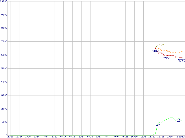 | HDT721064SLA360 (640GB,16MB)の価格推移 | | | (2007年11月29日~2009年2月12日) |