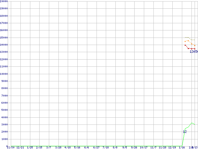 | Core 2 Duo E7500 (2.93GHz,L2 3MB)の価格推移 | | | (2007年11月30日~2009年2月13日) |