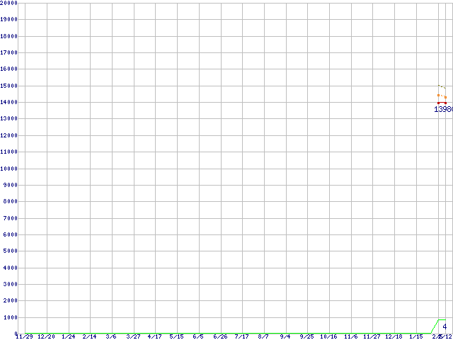 ※このグラフは過去のデータも税率5%相当に調整した税込み相当額のグラフです。 税率変更や、総額表示方式導入(2004年4月)の影響は除いています。 | | | ●凡例 | 最安値 (点線部は販売店未確認 または未調査) | 平均値 | 最高値 | ショップ数 |