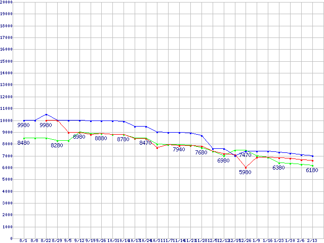 Socket AM2 (HyperTransport,Dual Core)の最安値推移
