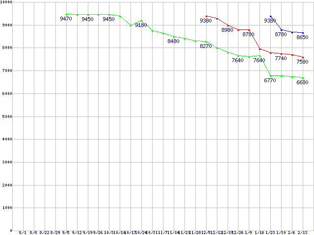 Socket AM2 (HyperTransport 3.0,Quad Core)の最安値推移
