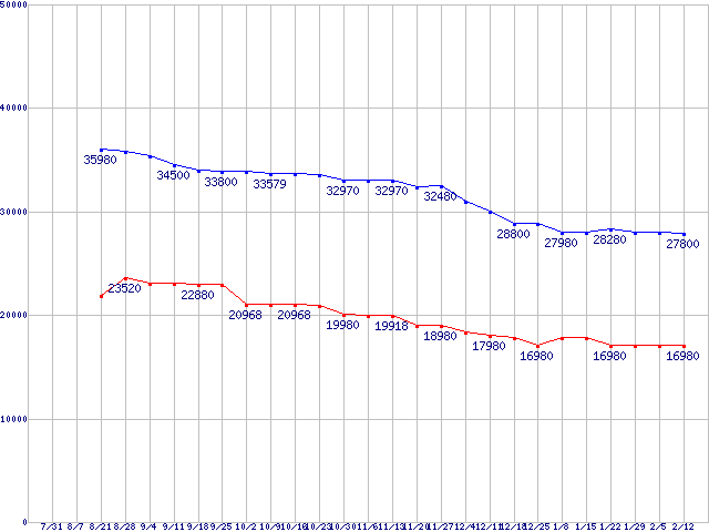 WD VelociRaptor (10000rpm,3Gb/s,16MB)の最安値推移